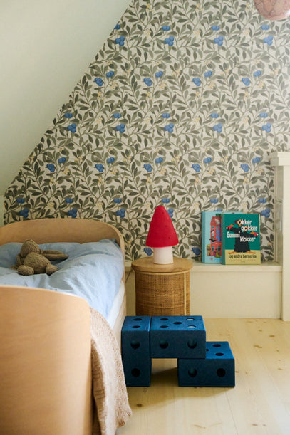 The William Morris wallpaper was a leftover roll that Malte's mother spontaneously decided to add to one wall in the room.