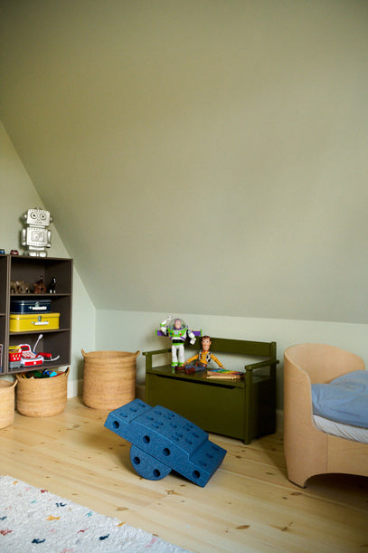 Starting with a strip of wallpaper, the transition began, turning Malte's space into a fun, creative and cosy room with a hidden nook, great storage options and space on the floor for active play.