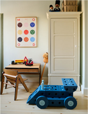 MODU is a unique modular system designed with play and functionality in mind. The building blocks can be combined in endless ways, fostering motor skill development, creativity, and open-ended play. From classic toys like ride-ons, balance boards and rockers to play kitchens, race cars and little pieces of furniture – MODU allows your child to shape their play however they want.