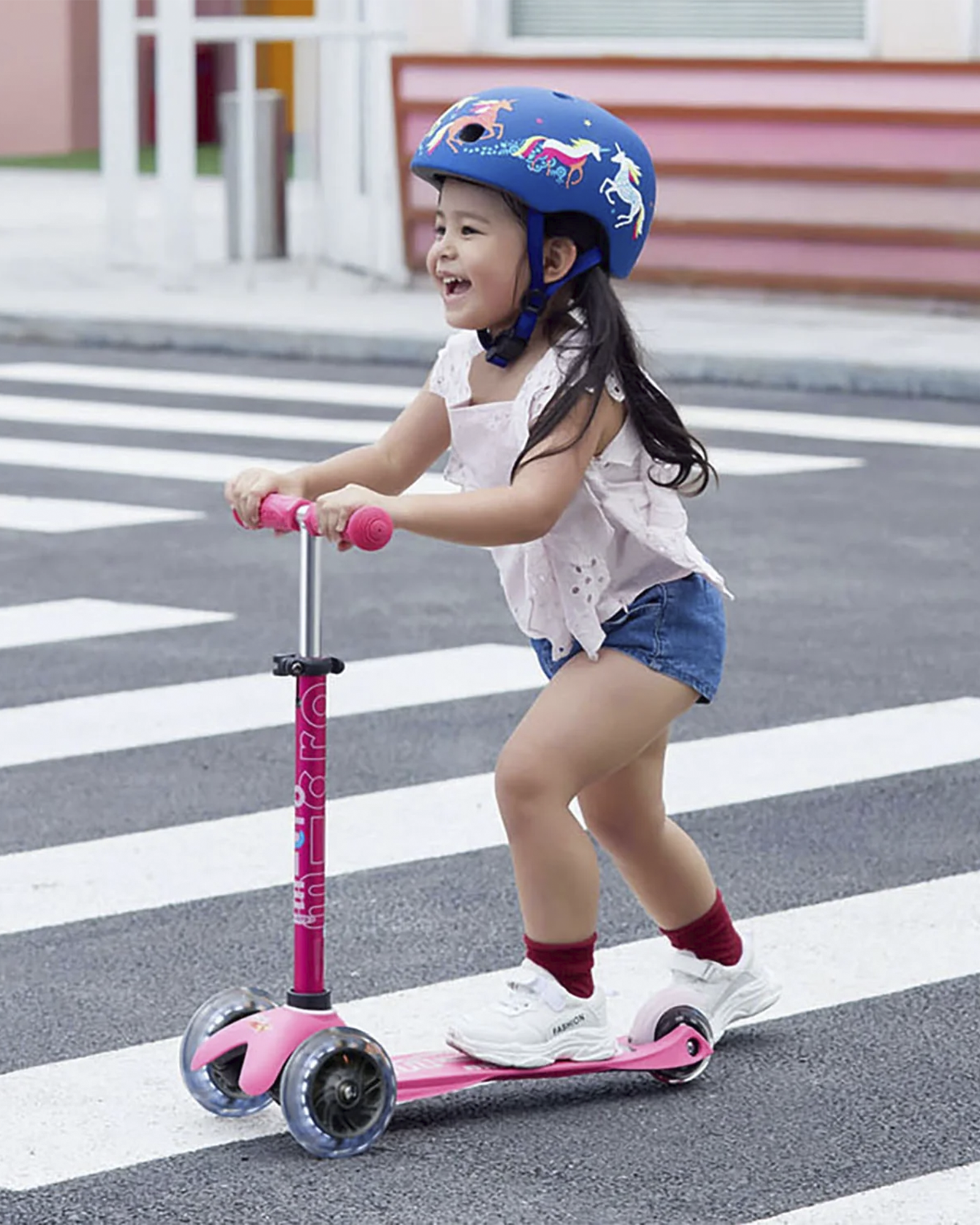 The Mini Micro is a lightweight scooter, that comes with three wheels for easy balance. The wheels light up when it runs, making it even more fun to go.