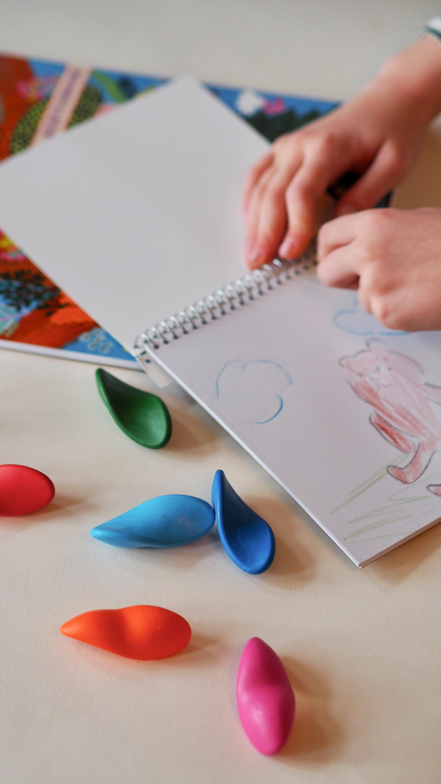 A box of 10 vibrant, ergonomic crayons for little hands.