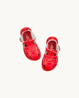 The perfect summer sandal for little explorers. This is Shark, a closed toe sandal for babies, here in a red colour.