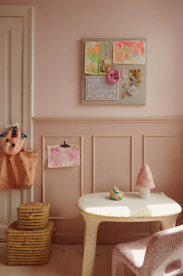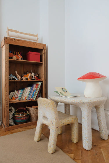 This is their table; a chubby-looking, playful table, matching their Charlie Chair perfectly. Its soft forms and rounded edges, as well as its sturdy body and legs, make this a great table for toddlers and kids.