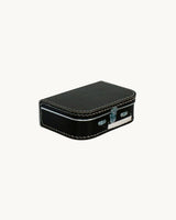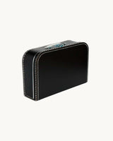 This cardboard suitcase come with cream coloured thread overstitching, and with a metal lining protecting the edges.