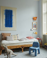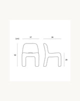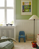 This is the Charlie Chair – a chubby, playful little chair. It might look heavy, but it only weighs 2,9 kg. making it easy to move around the house, even for children. Its soft forms and rounded edges, and its sturdy body and legs, make this a great chair for toddlers and kids.