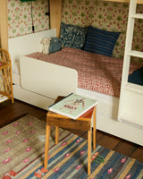 The Perch Bunk Bed meets all European safety standards. It’s built from solid birch and Baltic birch plywood, and has a sturdy frame and solid rails on top. It is lower than most conventional bunk beds, making access for kids safer, and good-night-kisses for adults easier. The bunk fits mattresses sized 90 x 200 cm available for purchase here. The ladder may be securely attached on either side of the bed, depending on the layout of the room.