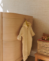 Keep your baby warm with this soft baby romper, made from certified organic wool fleece.