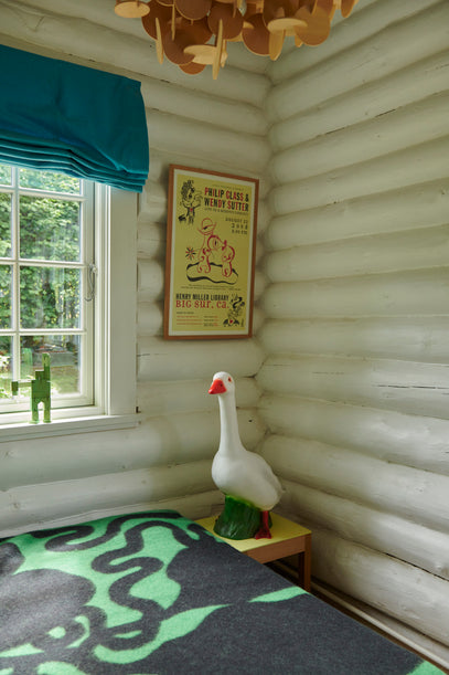 På væggen hænger en plakat købt på Henry Miller Memorial Library i Big Sur, Californien.
