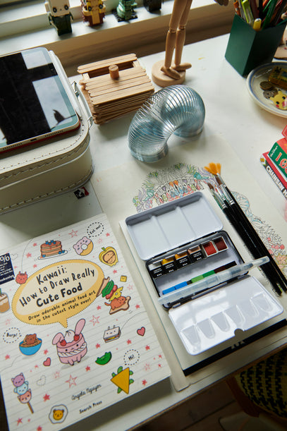 Gilbert elsker at male og tegne med alt fra vandfarve til tuscher til blyanter og farveblyanter. Det praktiske vandfarvesæt, der let kan tages med på tur, er fra Creativ Company.