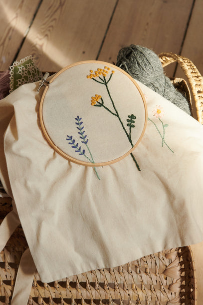 Broderi-kittet kommer med alt der skal til, for at komme i gang med at brodere.