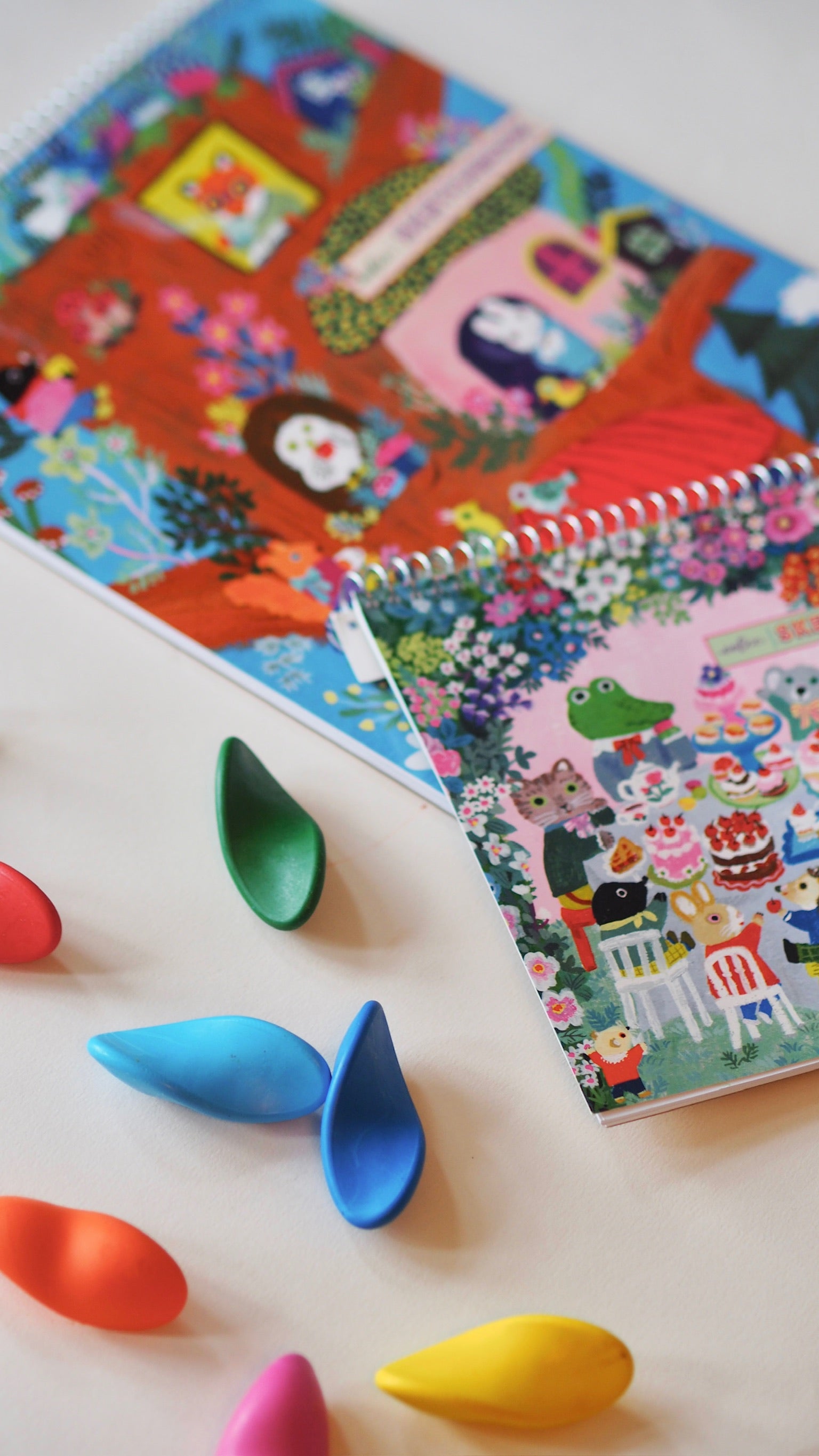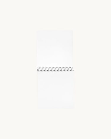 En firkantet skitsebog med papir i høj kvalitet og Yumi Kitagishis smukke kunstværker udenpå.