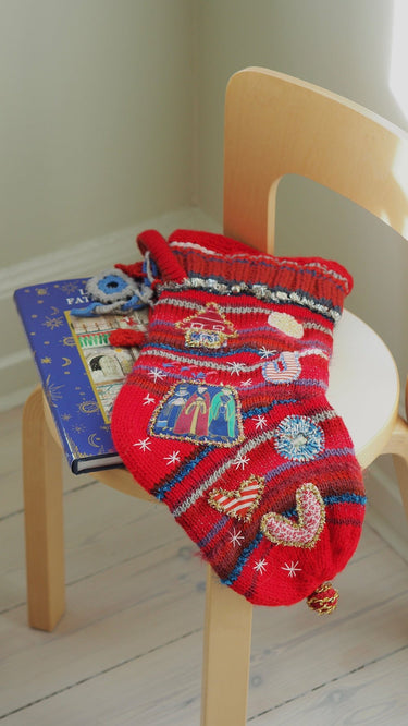 En meget smuk og helt unik håndstrikket julesok fra Helle Høgsbro Krag.
