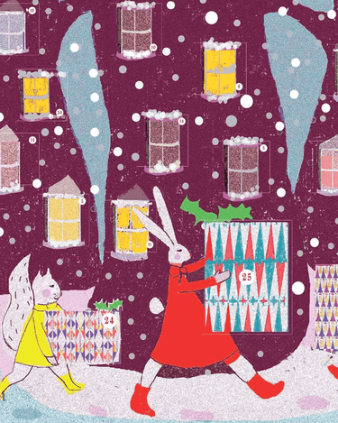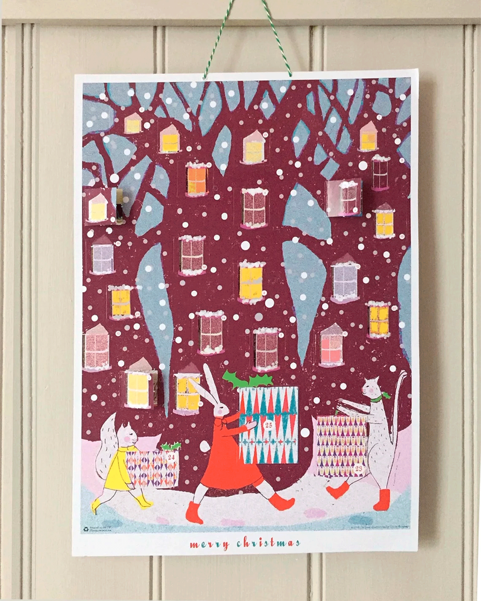 En skøn, farverig julekalender med 25 låger der skal åbnes. Hver låge afslører en række fine juletraditioner.