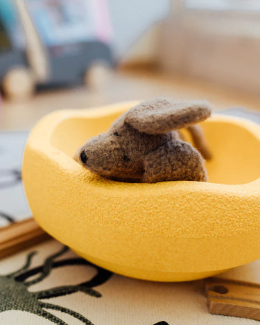 En enkelt balance-/stable-/sidde-/træde-klods i en smuk gul.