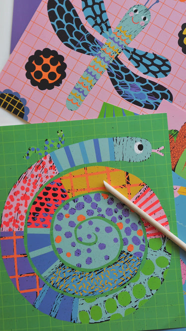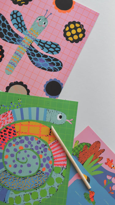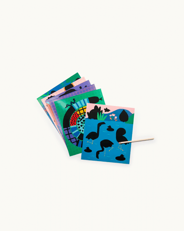 Gently scratch the card with the included beech wood stick to reveal pictures of the Toupitis. A fun, creative craft activity, containing 6 scratch art cards with pattern and 1 stick.
