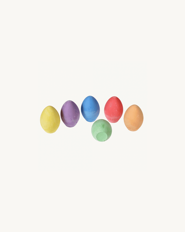 The Chalk Eggs come in a box with 6 chalks in colours: Pink, green, orange, blue, yellow and purple.